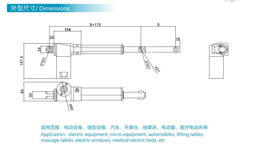 專業(yè)生(shēng)産加工(gōng)電(diàn♥→✘)動推杆、電(diàn)機(jī)推杆、控制(zhì)器(qì)、控制(zhì)闆、手控器(qìλ‍)等系列産品,适用(yòng)于手術(shù)床、口腔綜合治 ₽療機(jī)、按摩椅、電(diàn)動沙發₹✔§≤、電(diàn)動輪椅、醫(yī)療護理(lǐ)床、電(diàn)動展台♠↓Ω、電(diàn)動天窗(chuāng)、汽車(chē)、生(shēng)産線、★≠¶÷紡織、污水(shuǐ)處理(lǐ)、起重機(jī)、糧飼加工(gōng)™±、人(rén)體(tǐ)工(gōng)程家(jiā)具等需直線運動執δ×>行(xíng)機(jī)構的(de)場(chǎng)合。